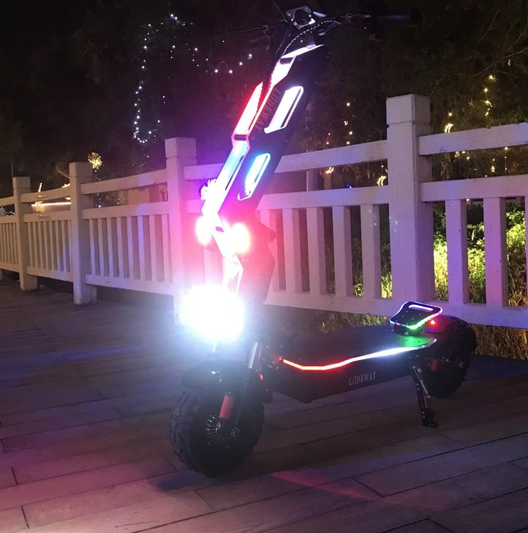 Electric scooter T9 is currently the most trendy product that all young people like, and Electric scooter T9 is also an off-road style. Riding on the street is also a beautiful scenery, which is particularly popular among European and American customers. Due to its unique appearance and lighting effect, Electric scooter T9 also have some unique options for accessories. The biggest selling point of this product is the acrylic board on the pole with LED lights, There is also a unique appearance that attracts many consumers. There are also designs on the seats, which are suitable for the characteristics of this product. Riding is particularly comfortable, and the power is also very powerful