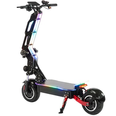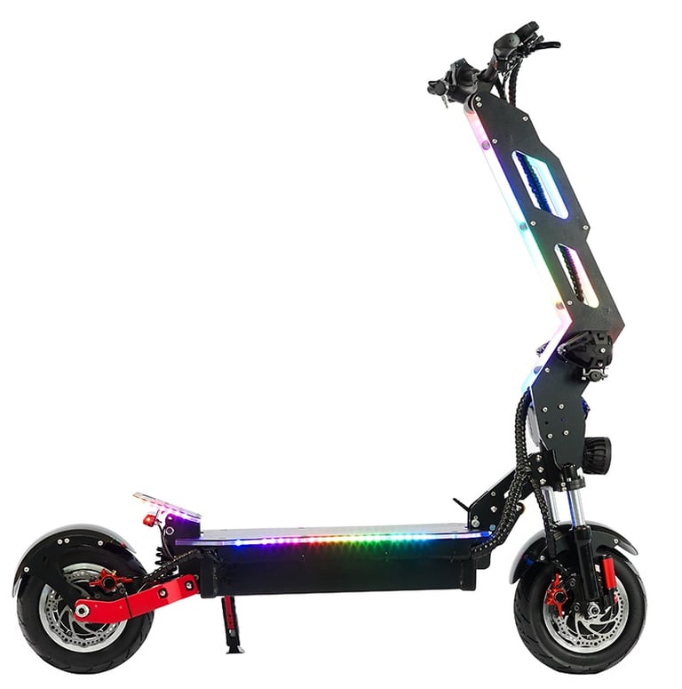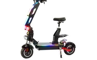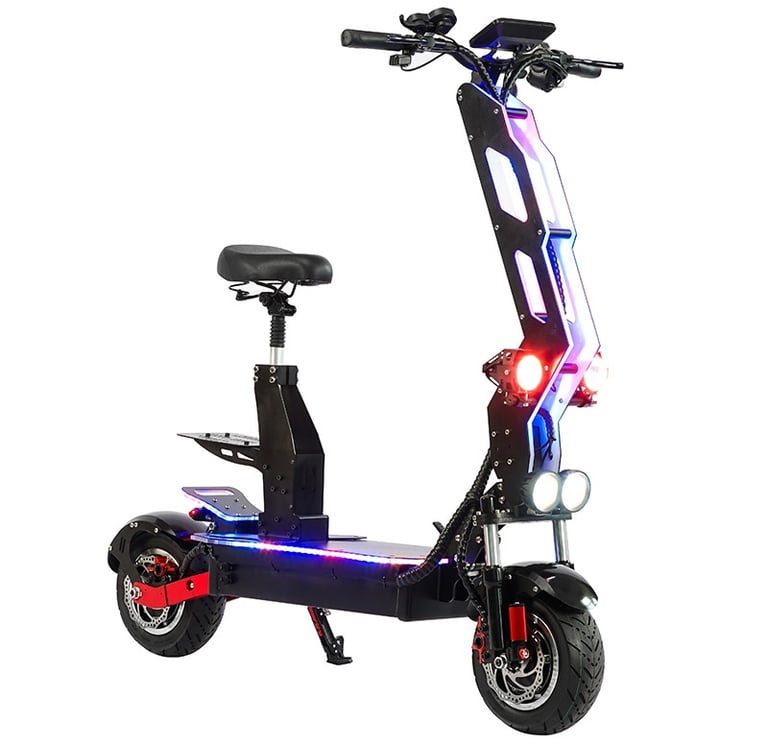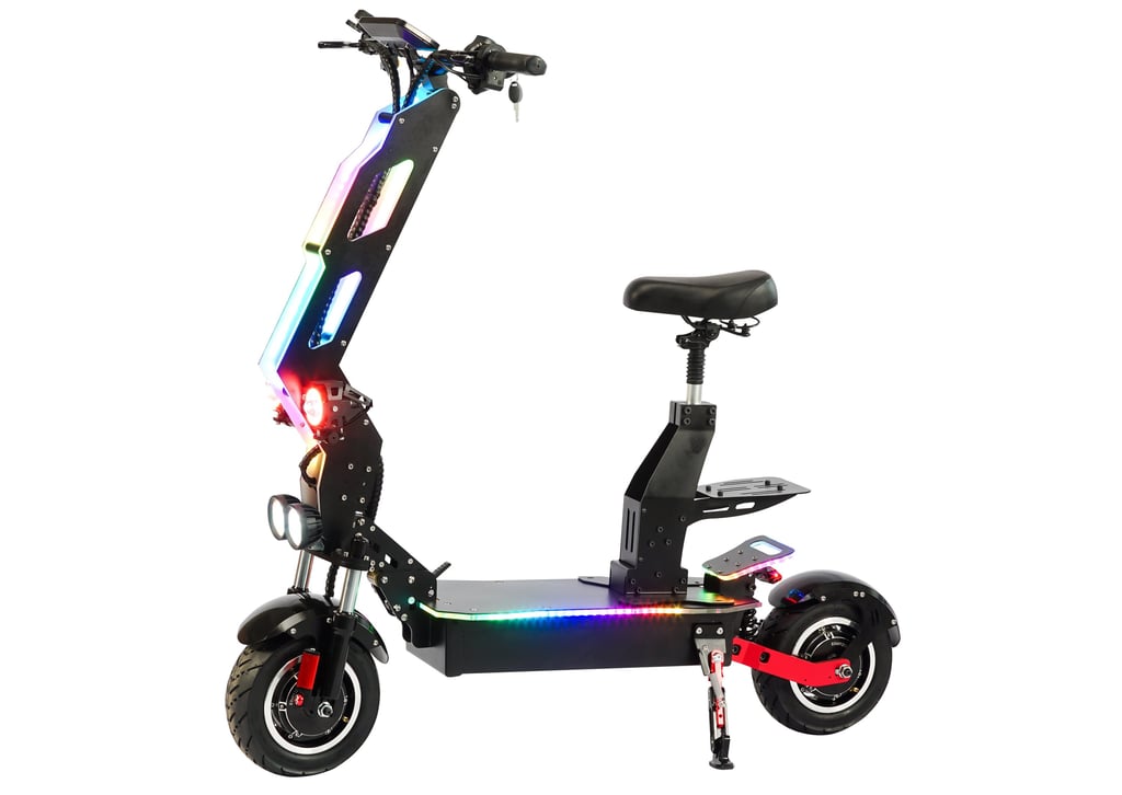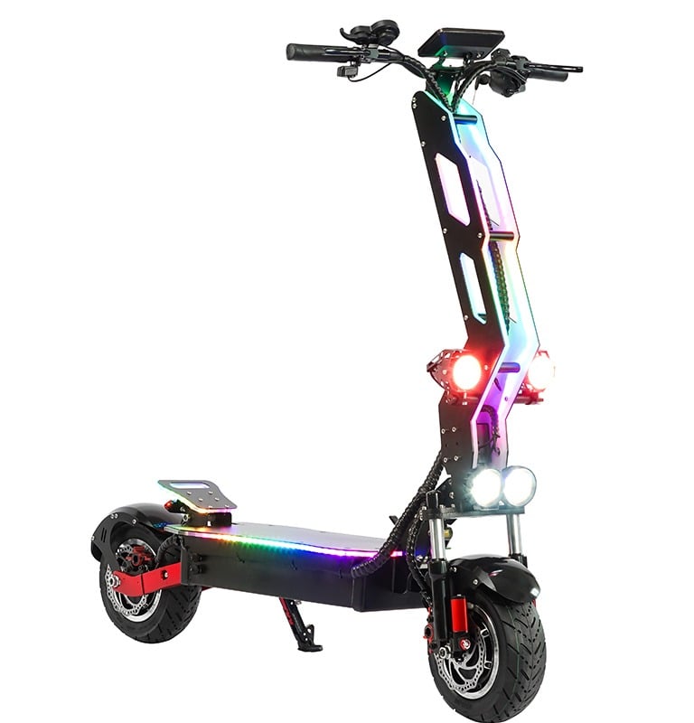 Electric scooter T9 is currently the most trendy product that all young people like, and Electric scooter T9 is also an off-road style. Riding on the street is also a beautiful scenery, which is particularly popular among European and American customers. Due to its unique appearance and lighting effect, Electric scooter T9 also have some unique options for accessories. The biggest selling point of this product is the acrylic board on the pole with LED lights, There is also a unique appearance that attracts many consumers. There are also designs on the seats, which are suitable for the characteristics of this product. Riding is particularly comfortable, and the power is also very powerful