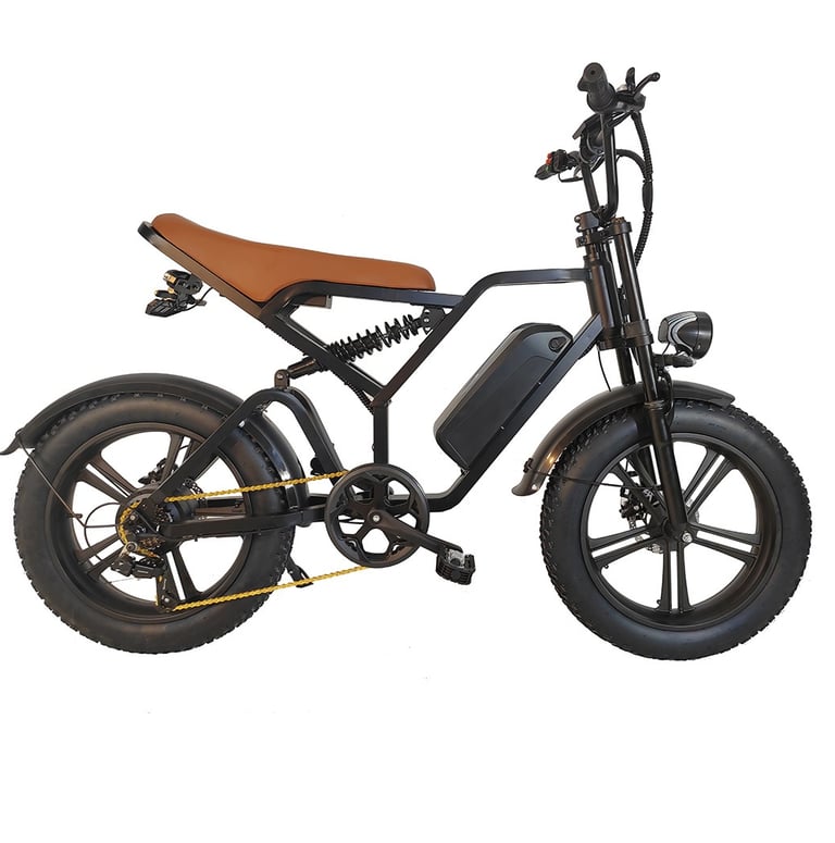 20inch fat tire 48V Ebike with front shock motor: 350W-1000W spoke wheel Range: 40kmBattery: 48V8-20AH lithium battery Speed: 25km/h-50km/h Tires: 20 * 4.0inch fat tire